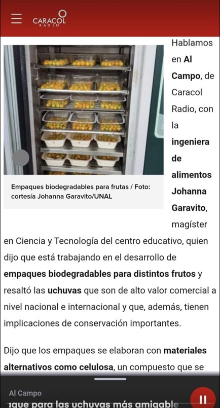 Caracol Radio – Empaques biodegradables para conservar mejor las uchuvas